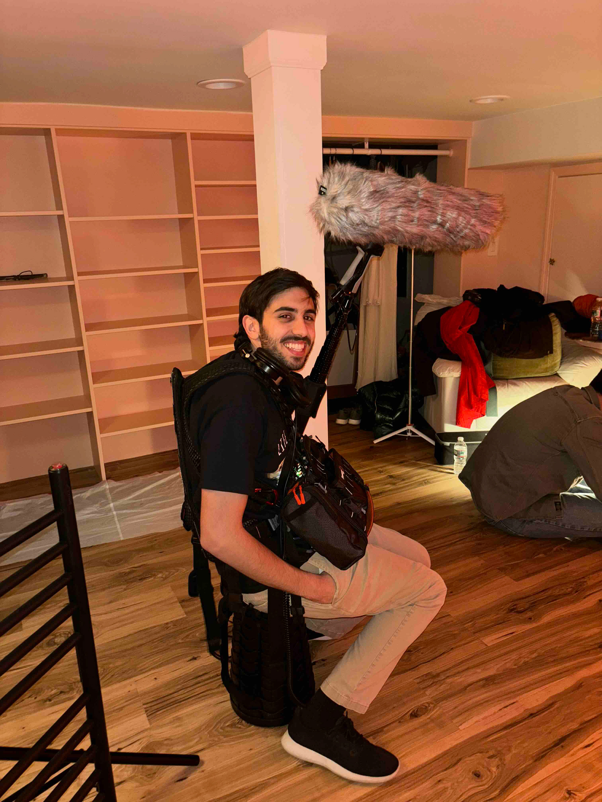 Below you can find behind-the-scenes photos from recent sets I've been on as well as a spreadsheet of my full kit. I'm currently equipped to mic up to eight actors simultaneously in addition to a primary boom mic.